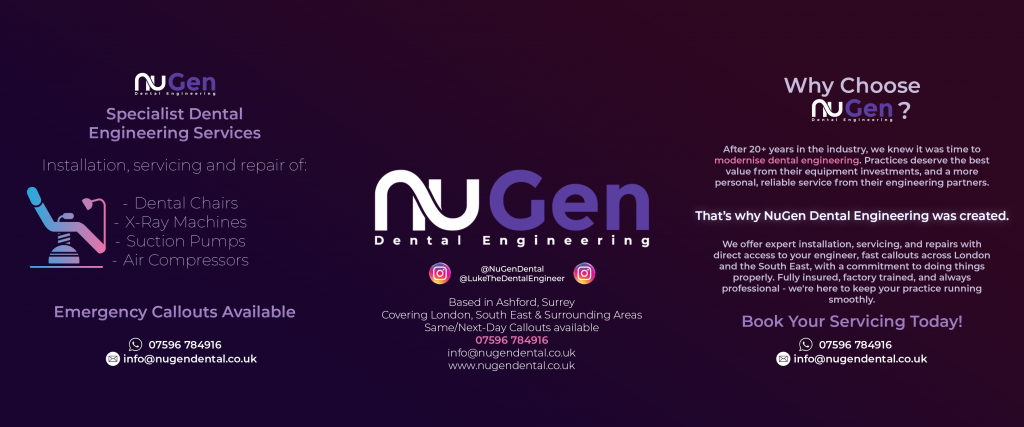 With over 20 years of hands-on experience in dental engineering, we bring a rare blend of deep technical knowledge and real-world problem solving to every surgery we support. From advanced dental chair treatment centres and digital X-ray units to compressors and suction equipment, we’ve trained with the worlds leading equipment manufacturers such as Dentsply Sirona, A-dec, Belmont, Planmeca, Cattani, Durr and many more.